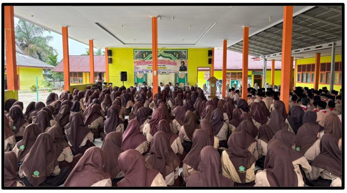 Atmosfer Akademis: Penggunaan Aula MTsN 1 Tebo memberikan kesan formal dan tertib, memperkuat karakter kedisiplinan siswa.