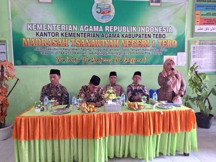 Kementerian Agama (Kemenag) Kabupaten Tebo menggelar monitoring dan evaluasi (Monev) pemanfaatan Dana Bantuan Operasional Sekolah (BOS) untuk triwulan ketiga dan keempat tahun 2025. Kegiatan ini berlangsung di Aula MTsN 1 Tebo pada 4 Februari 2026.