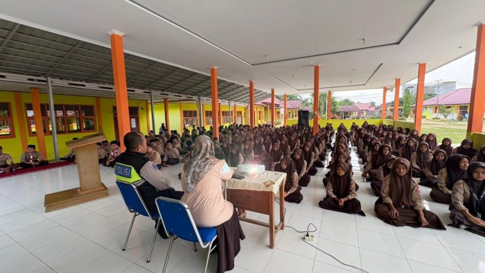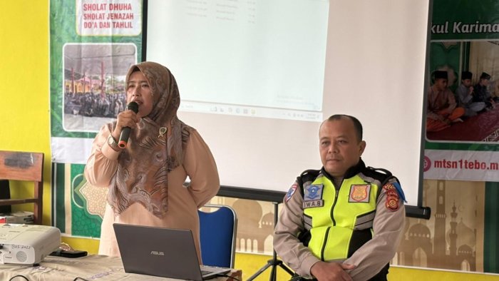 Tebo - MTsN 1 Tebo Unit Kamsel Sat Lantas Polres Tebo menggelar kegiatan Dikmas Lantas Police Goes to School di aula MTsN 1 Tebo. Acara ini dibuka oleh Kepala Madrasah, Hj Elya Pitri, dan bertujuan memberikan pemahaman serta meningkatkan kesadaran siswa mengenai pentingnya tertib berlalu lintas dan keselamatan di jalan raya.