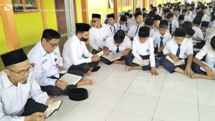 MTsN 1 Tebo menggelar program Tadarus Al-Quran selama bulan Ramadhan sebagai bagian dari rangkaian kegiatan keagamaan di sekolah. Kegiatan ini berlangsung di aula sekolah dan diikuti oleh seluruh siswa yang diwajibkan membawa Al-Quran masing-masing. Setiap kelas dipandu langsung oleh wali kelas untuk memastikan kelancaran dan kekhusyukan tadarus bersama.