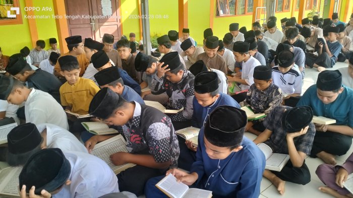 Muara Tebo, 28 februari 2026. Triana, S.Si, seorang guru matematika di MTsN 1 Tebo, sukses memandu kegiatan pesantren kilat yang digelar di aula Madrasah Kegiatan ini diikuti oleh para siswa dan berlangsung dengan tertib serta lancar, mencerminkan persiapan matang dari panitia dan antusiasme tinggi dari seluruh peserta.
