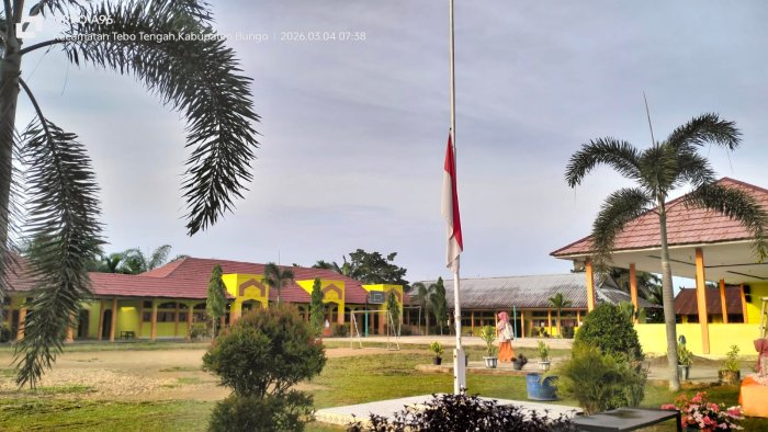 Tebo -MTsN 1 Tebo mengibarkan Bendera Merah Putih setengah tiang selama tiga hari, sebagai bentuk penghormatan dan bela sungkawa atas wafatnya Jenderal TNI (purn.) Try Sutrisno, Wakil Presiden Republik Indonesia ke-6, yang meninggal dunia pada 2 Maret 2026 di Jakarta.