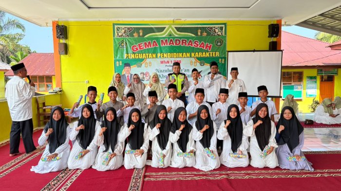 Tebo MTsN 1 Tebo Aula MTsN 1 menjadi saksi khidmatnya peringatan turunnya Al-Qur'an atau Nuzulul Qur'an yang digelar oleh keluarga besar MTsN 1 Tebo Sabtu 7 Maret 2026 Acara yang dihadiri oleh seluruh siswa, guru, dan staf ini terasa semakin istimewa dengan adanya pemberian penghargaan (reward) langsung dari Kepala MTsN 1 Tebo kepada sejumlah siswa yang menunjukkan prestasi luar biasa dalam bidang tilawah Al-Quran.