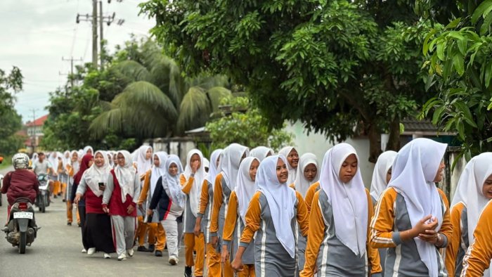 MTsN 1 Tebo mengadakan kegiatan jalan sehat pada Sabtu, 4 April 2026. Kegiatan ini diikuti oleh Kepala MTsN 1 Tebo, Hj. Elya Pitri, S.Pd.I., M.Pd.I., bersama para guru dan tenaga kependidikan yang mendampingi siswa kelas dalam rangka meningkatkan kebugaran tubuh.