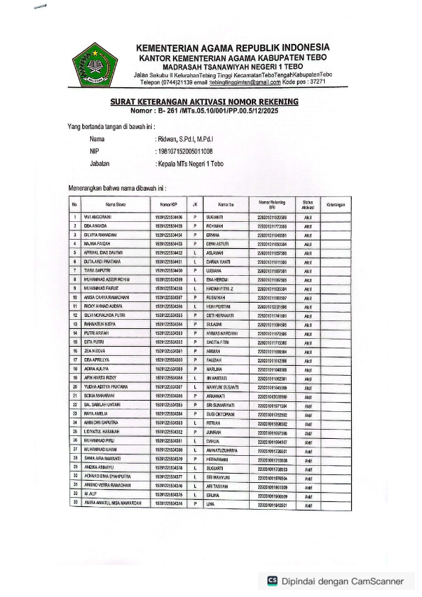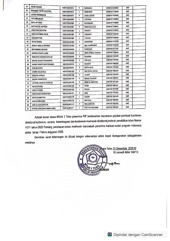 MTsN 1 Tebo mendata dan mengajukan siswa yang memenuhi syarat untuk diajukan sebagai penerima beasiswa